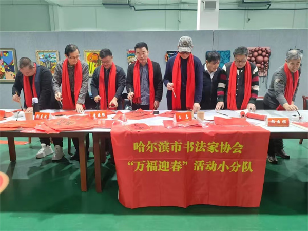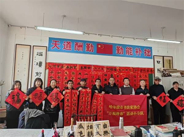 在元旦和春节来临之际,哈尔滨市书法家协会将组织更多的“万福迎春”小分队,深入各区县(市)村镇社区,学校军营、工矿企业等基层一线,赠送或现场创作“福”字及春联等体现中华文化的书法作品,适时举办书法公益讲座,开展书法辅导、交流,“结对子、种文化”以及慰问等活动,将书法家们的深情祝福和美好祝愿送到千家万户,既营造出喜庆祥和的节日氛围,同时让群众感受中华优秀传统文化的魅力,满足人民群众的多样化、多层次、多方面的精神文化需求。