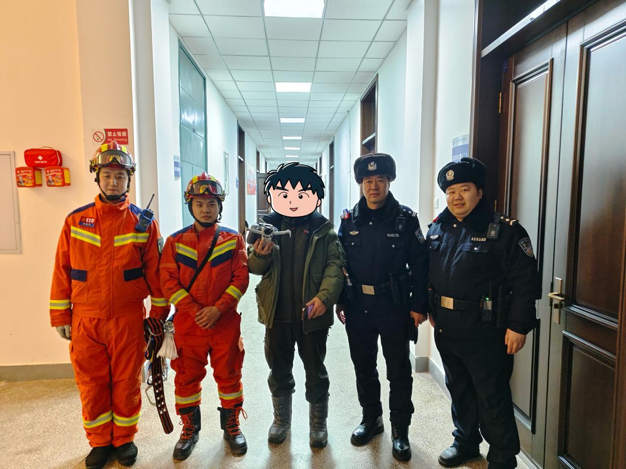 这位美籍华裔男子在户外操控无人机进行拍摄时,无人机突然出现故障导致断电,卡在了高空的一处建筑物边缘。男子尝试了各种方法,却始终无法使无人机脱困,焦急万分的他只好向附近的巡逻民警求助。接到求助后,民警华萌、辅警李明洋迅速赶到现场,一边安抚男子的情绪,一边对现场情况进行勘查。由于无人机所处位置较高,情况较为复杂,民警果断联系了消防大队,请求支援。消防大队接到通知后,立即派出专业人员携带救援设备赶赴现场。