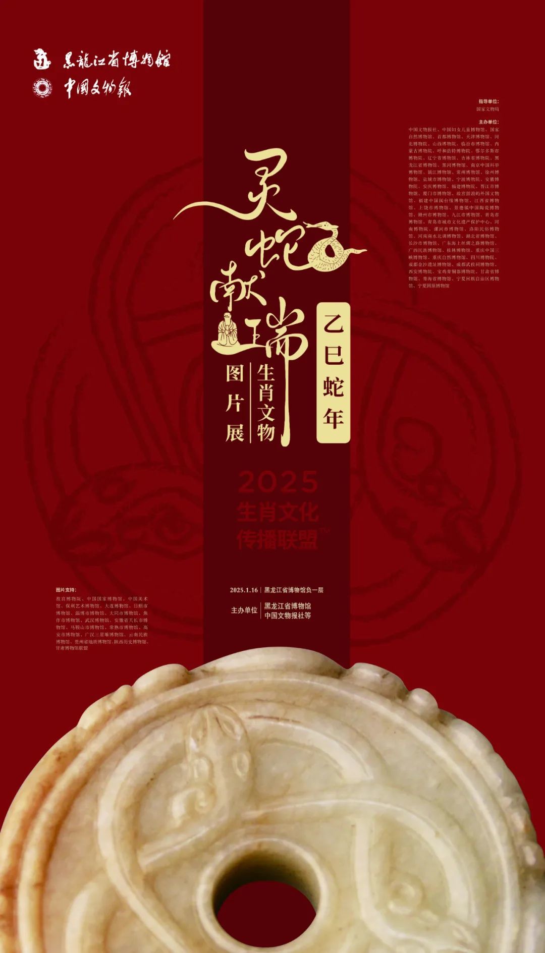活动介绍:“灵蛇献瑞——2025乙巳蛇年生肖文物大联展”由国家文物局指导,黑龙江省博物馆联合中国文物报社等国内多家文博机构主办,以“蛇”为主题,整合特色馆藏资源,全面深入地展现“蛇”在中华民族悠久历史文化中的独特魅力。