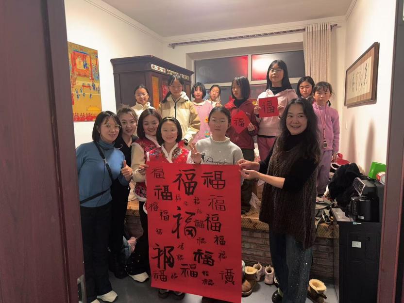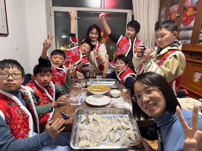 最后,营员们在双城文旅局推荐的牧克登布八旗小院欢度小年。他们体验了各种传统的民俗活动,包饺子、剪窗花,还共同书写了百福图欢庆新春,每一个“福”字都承载着对新年的美好祝愿。热腾腾的饺子端上桌,红红的灯笼高高挂起,五彩的窗花贴满窗,整个小院洋溢着浓浓的年味。