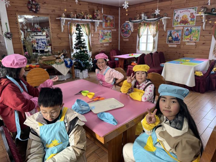 在世界最大的俄式建筑群伏尔加庄园。营员们仿佛置身于俄罗斯的乡村庄园之中。远观巴甫洛夫城堡,经森林别墅走进圣尼古拉(教堂)艺术馆,观看唱诗表演,燃烛祈福,参观普希金沙龙观看主题文化艺术展览,游览以小白桦餐厅为核心的文化雕塑园,外观博格得利酒堡……手工大列巴制作体验,更是让营员们大呼过瘾。在专业师傅的指导下,他们亲手制作出了一个个香喷喷的大列巴。品尝着自己亲手制作的面包,营员们的脸上洋溢着满满的成就感。