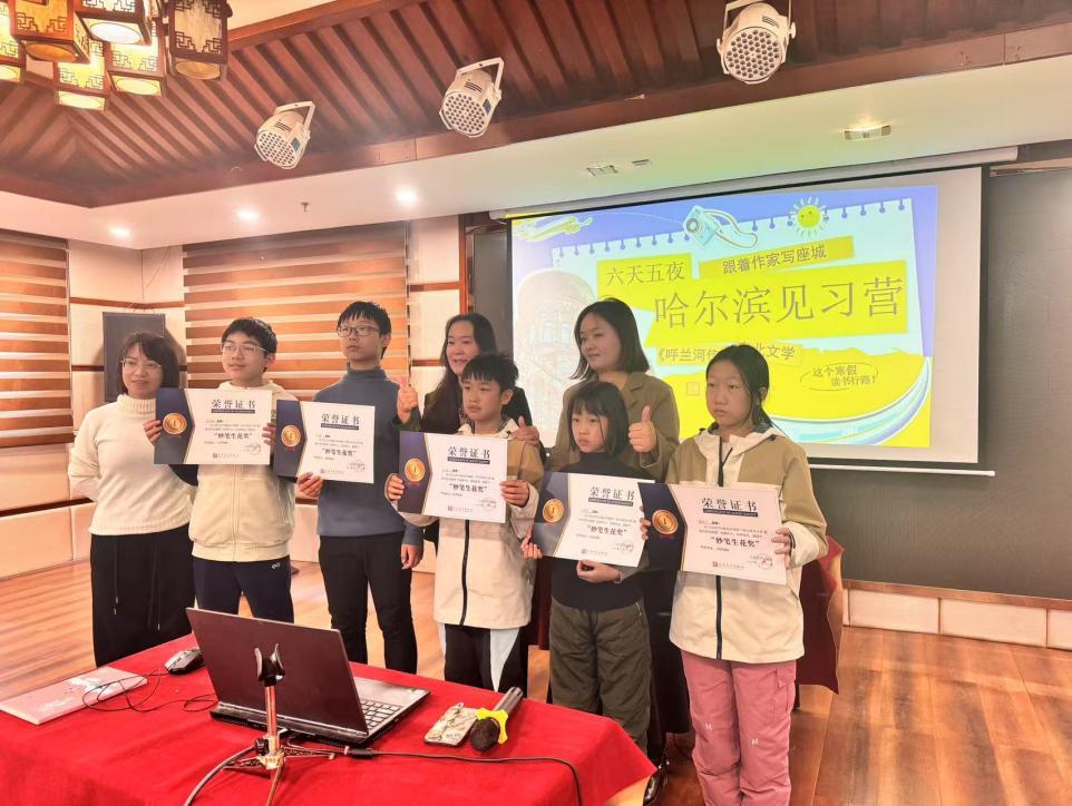 随着颁奖仪式与结营仪式结束,人民文学出版社哈尔滨研学营也圆满落下帷幕。在这六天五晚的旅程中,营员们收获满满。他们不仅深入了解了哈尔滨的历史文化与民俗风情,更在文学、艺术、科技等多个领域有了深刻的体验与感悟。通过实地探访与亲身体验,他们对东北这片土地有了更为深刻的认识与热爱。哈尔滨,这座充满魅力的城市,以其独特的文化魅力与热情好客,给营员们留下了难忘的印象。相信在未来的日子里,这些营员们会将在这次研学营中所学到的知识与所感受到的精神,转化为自己成长的动力,在人生的道路上不断前行,书写属于自己的精彩篇章。