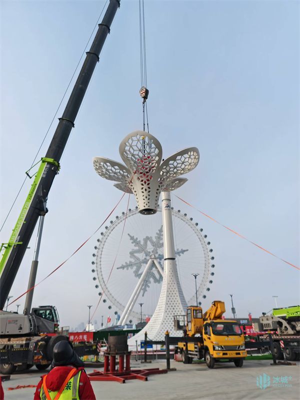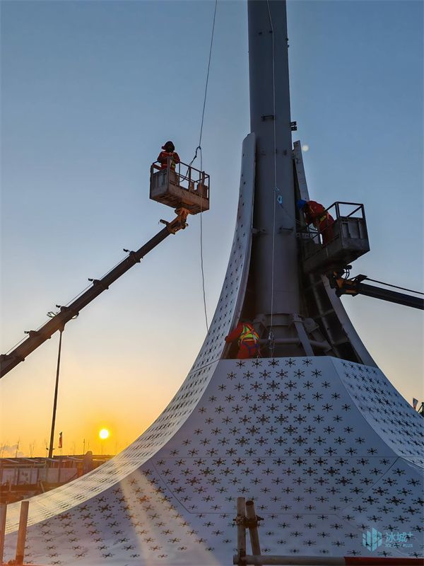 去年8月末接到任务后,哈市住建局牵头成立专班。从设计、加工到打桩和安装,专班克服了有效施工期短、低温下安装难度大,以及独有造型打磨难等一系列难题,用时不足百天,最终实现开幕式上主塔“雪韵丁香”完美亮相,并点燃双亚冬之城的灿烂夜空。