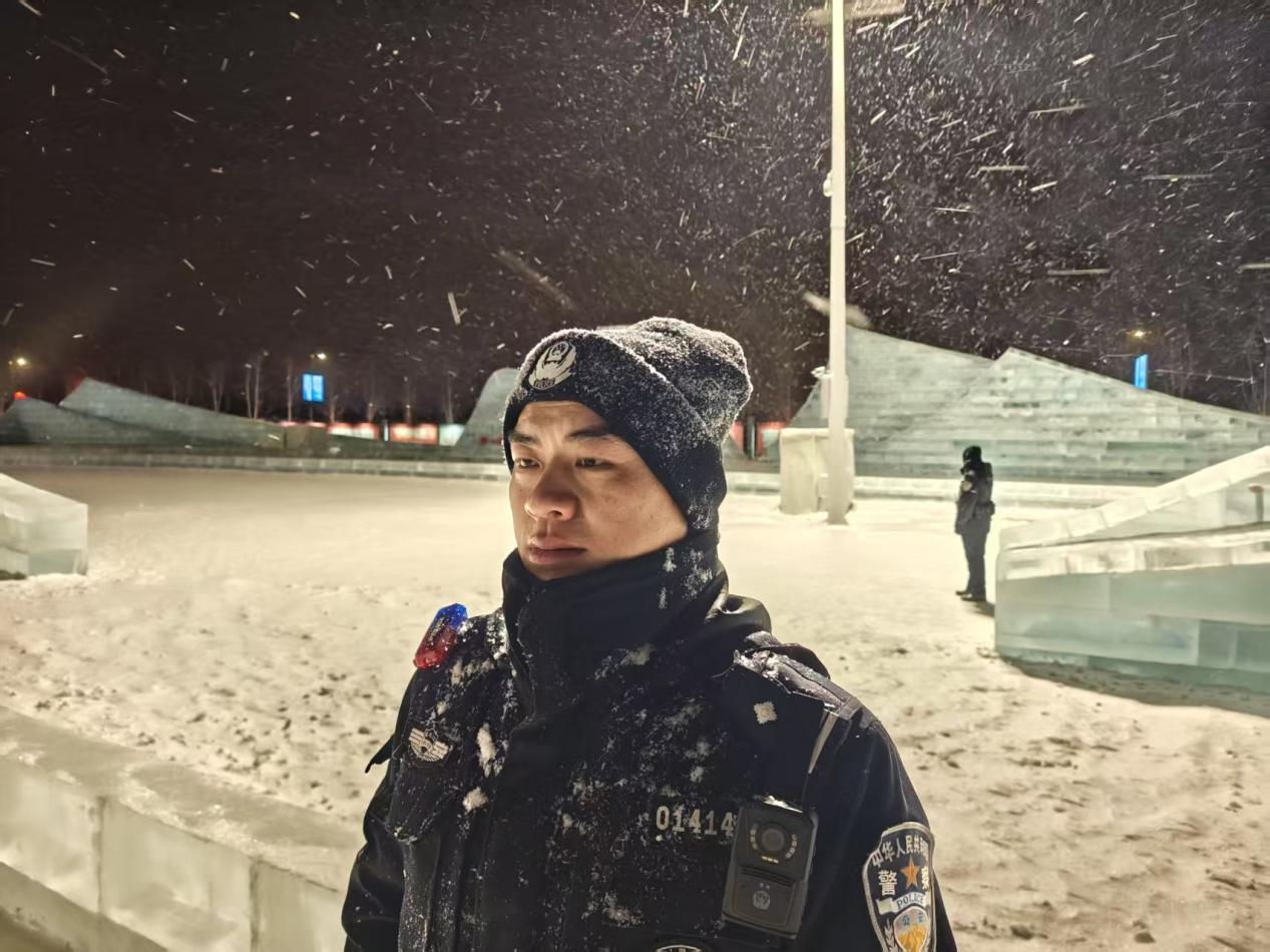 在亚布力赛场外围,一个身影很是特别,他是亚雪分局民警吴永权,这已经是他在这里坚守岗位的第14天了。寒风凛冽,呼出的热气瞬间在口罩和睫毛上凝结成霜,加上警帽上挂住的浮雪,宛如一个守护平安的“雪人”。