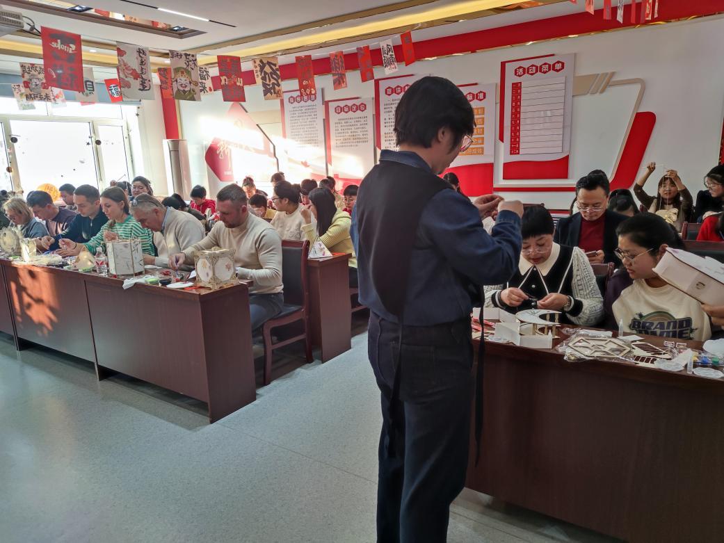 活动现场张灯结彩、精心布置,设置了花灯制作、非遗体验以及趣味灯谜竞猜三个活动区域。在花灯制作区,工作人员提前准备了制作花灯的材料,并现场讲解示范,市民朋友们和俄罗斯游客兴致勃勃,纷纷动手制作,不一会儿,一盏盏象征团圆美满的传统花灯和融入现代元素的创意花灯便呈现在眼前。