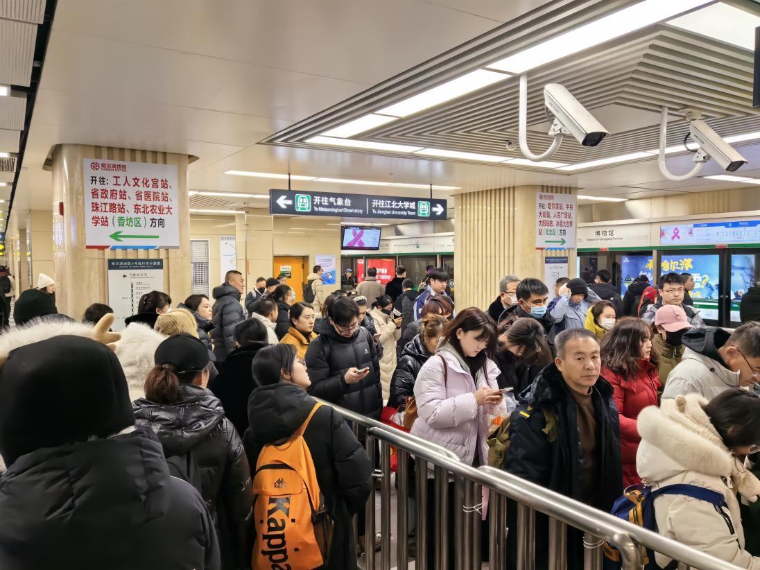 春节期间,从除夕至初七平均日客流量84.58万人次,日均客流强度为0.92万人次/公里日,位列全国第一。其中除夕当日客流强度位列全国第四,初一客流强度位列全国第五,初二至初六客流强度连续五天位列全国第一,这在全国城市轨道交通史上堪称罕见!作为一座二线城市,哈尔滨地铁的日客流强度持续领跑全国,不断刷新纪录,这不仅是对哈尔滨地铁运营能力的一次巨大考验,更是对其服务品质的极高赞誉。