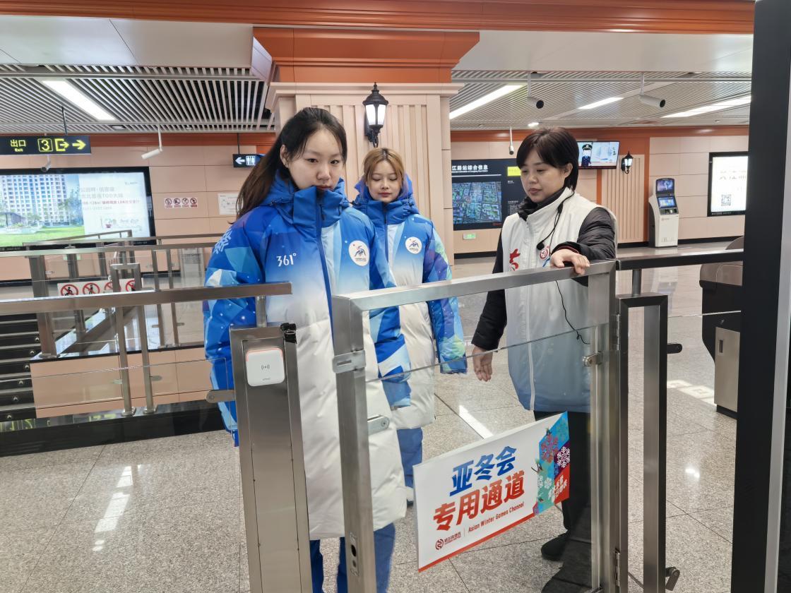 地铁线网各车站为旅游团体、残疾人、亚冬会运动员及随队官员、技术官员、注册媒体、工作人员及志愿者开辟了“亚冬会专用通道”;与火车站接驳的地铁车站,在安检点设置“绿色通道”,方便旅游团队出行的同时,还为特殊乘客及无包乘客等提供快速安检通道,节约乘客出行时间。车站每个绿色通道都有专人值守,为乘客提供引导服务。