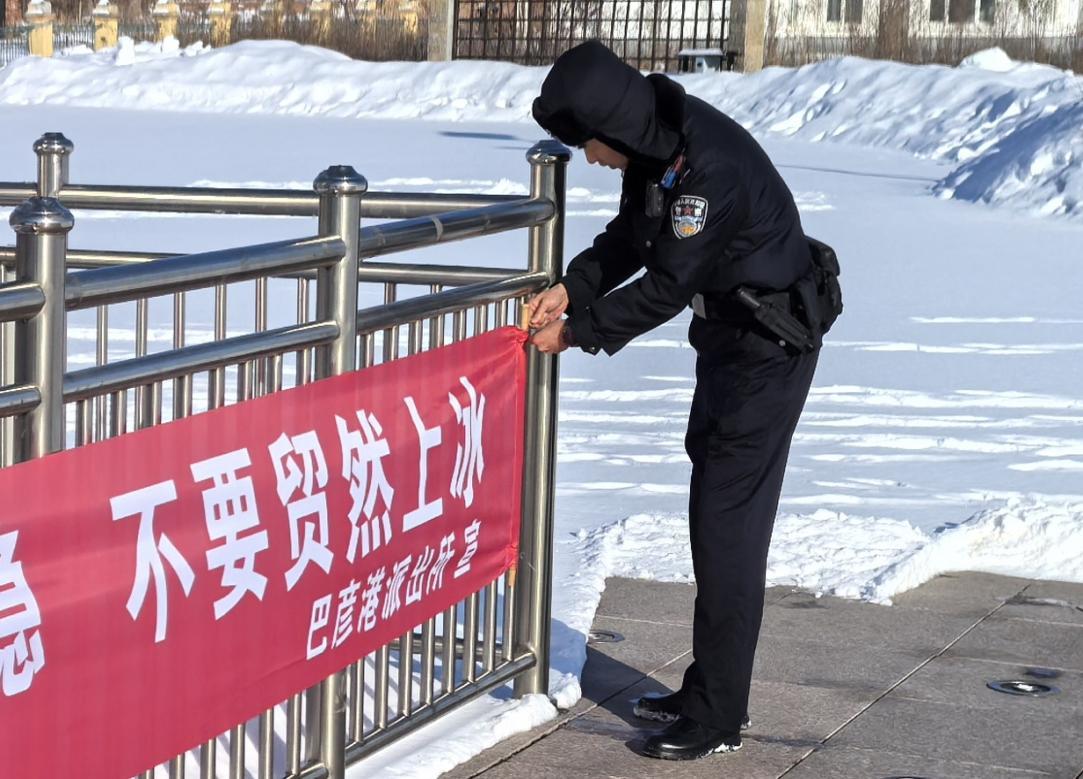 市公安局始终秉持“靠前一步,主动作为”的工作理念,针对辖区冰面危险地段,采取不定时、高频次的巡逻防控措施。紧盯过江通道及下江道口,及时劝阻在冰面通行、逗留、游玩的群众。还通过设置警示牌、拉设警示刀旗等方式,提醒群众注意安全,并通过面对面讲解、发放宣传资料等形式,宣讲冬季防坠冰溺水知识,提升群众的安全意识和自我保护能力。