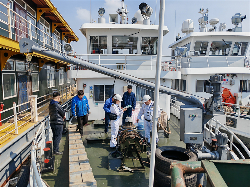 按照《中华人民共和国船舶安全监督规则》等海事法规和有关文件要求,结合船舶首航出坞防污染、内河船舶配员等专项检查,海事安检员规范实施了本次监督检查,发放《船舶安全监督廉政执法告知书》,核查船舶证书和船员证件的有效性,检查船舶文书是否规范记载,船员是否满足配员要求和具备履职能力,并对船体、船舶动力设备、系泊设备、消防设备、救生设备和防污染设施设备,以及无线电设备、号灯、号型、声响信号、信号旗等进行了详细检查。最后,安检员现场签发了《船旗国监督检查报告》,开具了安检缺陷项,要求船方在开航前纠正。