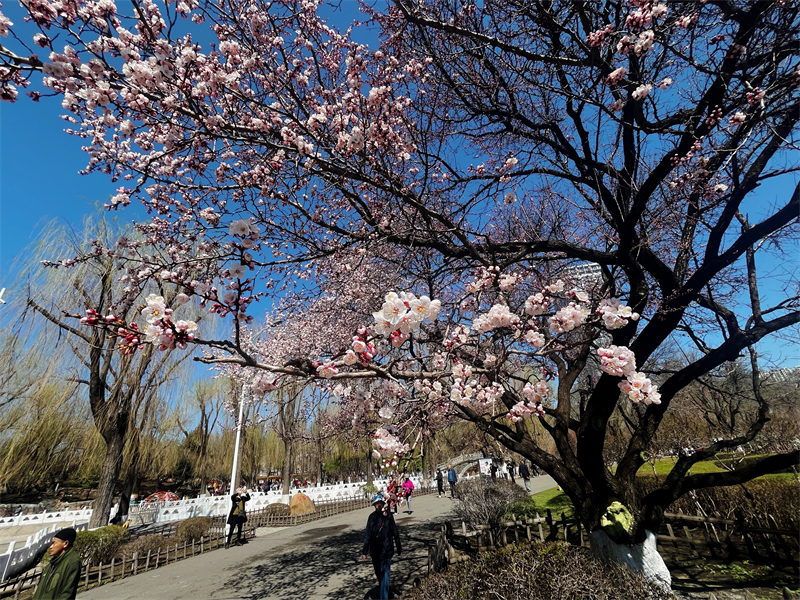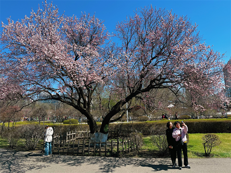 22日,一夜降雨过后,道外区古梨园内181岁“高龄”的山杏树花开满枝,这棵老树虽历经百年沧桑,但依然生机勃勃,娇嫩的花朵在春光中格外明艳,引得众多市民驻足观赏拍照,感受百年古树“杏”福的味道。