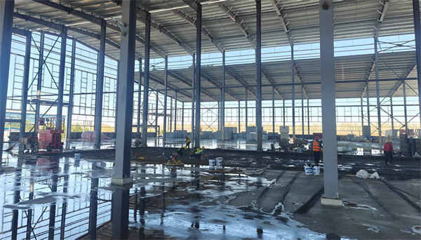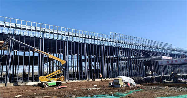 项目通过实施“工序立体穿插法”,使主体建设与设备安装同步推进,同时设立夜间施工专班,创新政企多方联通机制,在保障工程质量前提下,全力加快建设进度。目前主厂房基础框架、屋顶底板、幕墙龙骨安装均已完成,整体工程进度超过65%,预计5月上旬可实现厂房暖封闭。