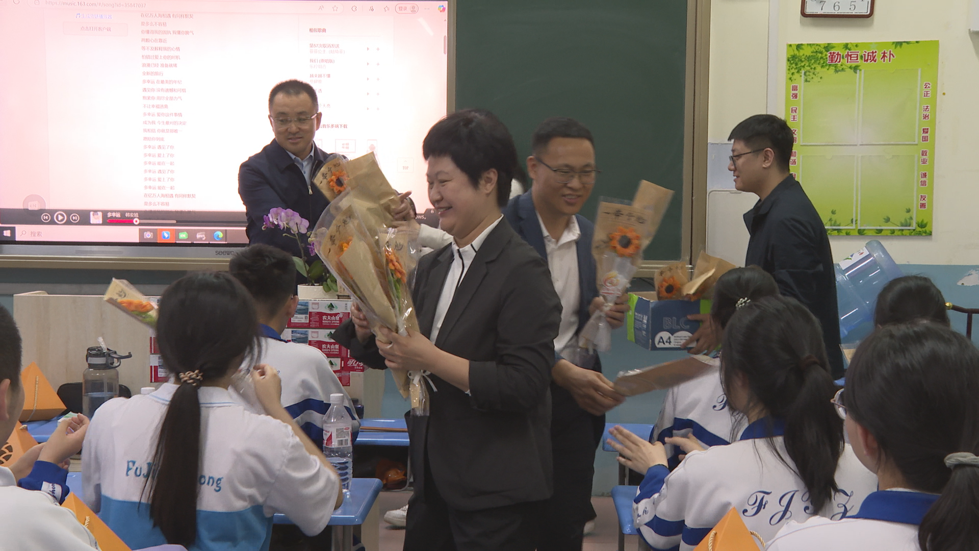 殷切期许,礼赠祝福启新程。在高考前最后一节晚自习的温馨时刻,市领导亲临富锦市第一中学,走进教室,为即将奔赴考场的900余名高三学子送上饱含深意的“一举高中”伴手礼。礼物包含:象征“向阳而生、前途光明”的向日葵花束、寓意“金榜题名、前程似锦”的定制胸针、承载“一举高‘粽’(中)”美好祝愿的粽子挂件。表达了对高考学子们的深情祝福和富锦这座城市对未来栋梁的郑重期许和热情拥抱。