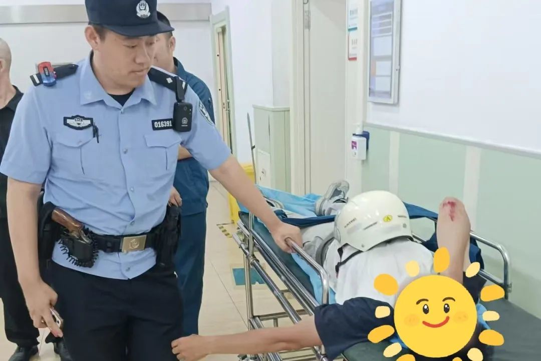 医护人员赶到后,民警辅警协助医护人员对伤口进行简单处理,随后一同将其送往医院救治。为尽快联系家属并核实身份,民警拿出手机,通过打字的方式耐心与伤者交流。在屏幕的一来一往中,民警逐步了解到伤者姓王,是一名快递员,当晚冒雨配送时不幸遭遇意外。最终,民警获取了其家属的联系方式,立即拨通电话通报情况,让家属及时赶往医院照料。目前,伤者经救治已无生命危险,家属对民警辅警的及时救援和细心处置连连道谢。