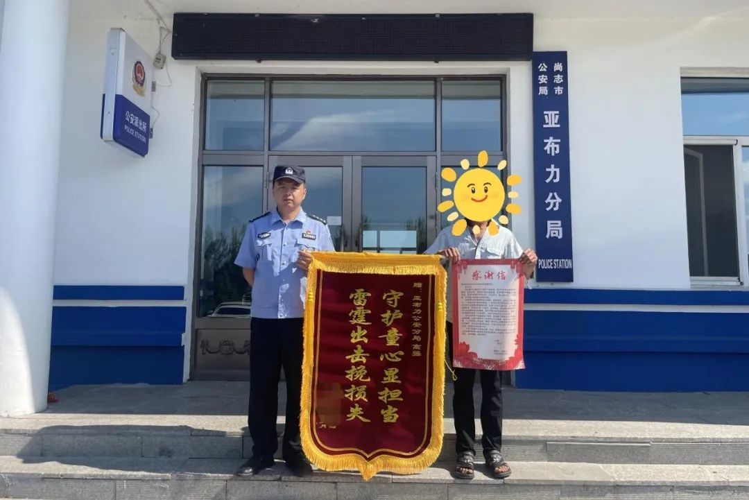 在民警的不懈努力下,迟大哥终于成功收到了退款。7月7日,他满怀感激地将一面印有“守护童心显担当 雷霆出击挽损失”的锦旗和感谢信送到尚志市公安局亚布力分局。