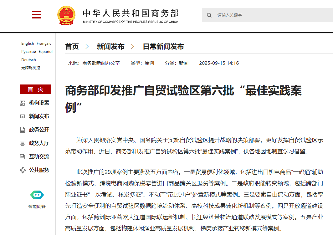 近日,商务部印发推广自贸试验区第六批“最佳实践案例”,供各地因地制宜学习借鉴。其中,黑龙江1个案例入选。