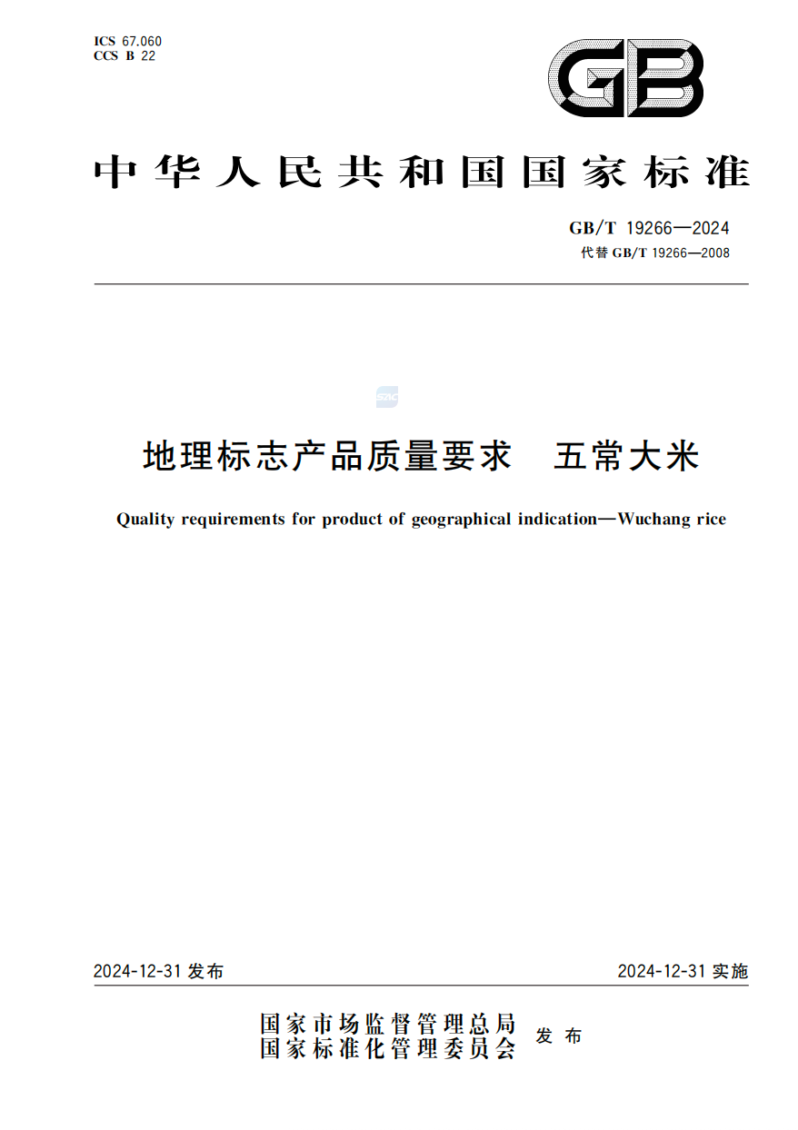 选五常大米,先看 “身份证”—— 国家标准 GB/T 19266-2024《地理标志产品质量要求 五常大米》。这个标准是五常大米的 “准入门槛”,从品种、种植到加工都有严格规定,只有真正产自五常、符合标准的大米,才能使用这个标识。
