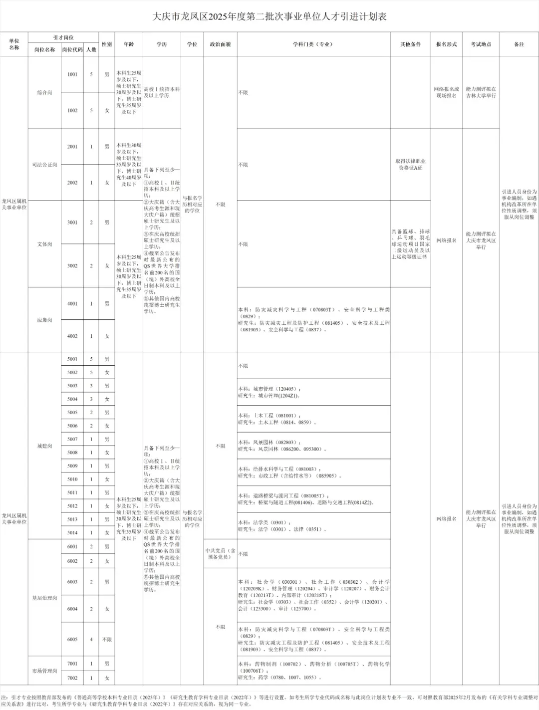 查看公告原文及相关附件下载请点击蓝色链接→《大庆市龙凤区2025年度第二批次事业单位人才引进公告》