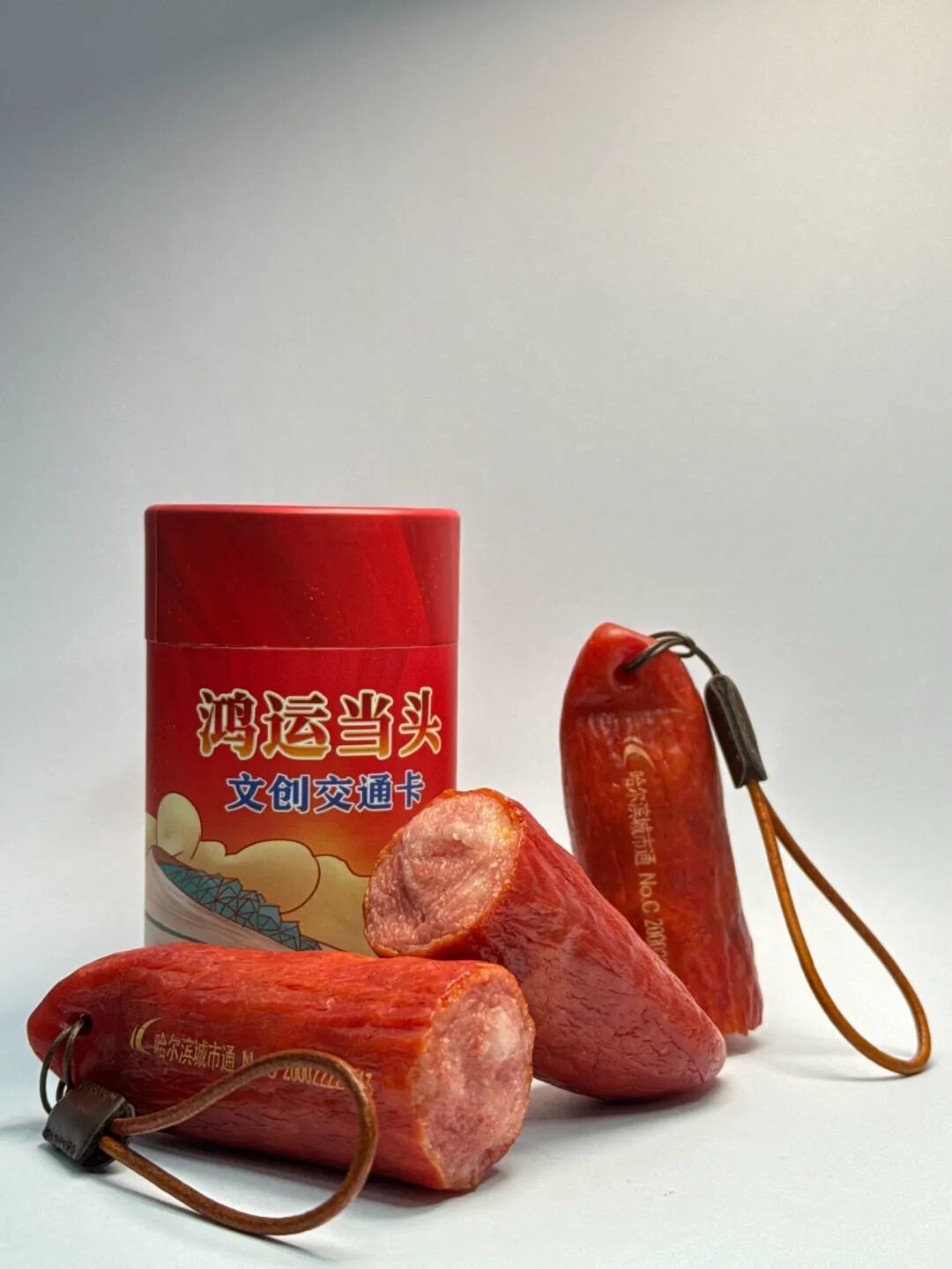 据了解,此次推出的文创公交卡是交通集团智能卡公司践行“守正创新、众行致远”发展理念的具体举措。卡片设计深度结合哈尔滨城市文化基因,以本地标志性美食“红肠”为核心元素,采用写实风格还原红肠特色。红棕色肠衣纹理深浅交错,完美复刻了果木熏制的自然质感;截面隐约可见的肉质触感,精准还原了“外皮微脆、内里多汁”的味觉联想,一张小小公交卡,成为承载城市风味的移动文化符号。