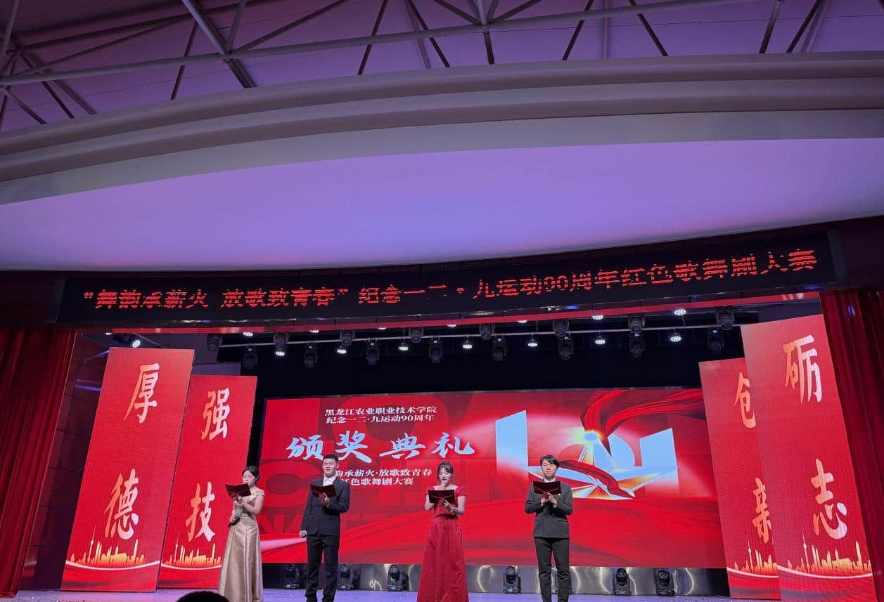 本次红色歌舞剧大赛的成功举办,既是我院团委以艺术为载体传承红色基因的生动实践,更是为广大团员青年搭建的厚植家国情怀、展现青春风采、锤炼责任担当的重要平台。未来,我院团委将继续以红色主题教育为核心抓手,紧扣农业职业教育特色,立足青年成长需求,策划开展更多兼具思想深度、艺术温度、青年热度的校园文化活动,引领全院团员青年把一二・九运动的爱国精神、奋斗精神转化为勤学笃行的不竭动力,在乡村振兴的广阔天地中施展专业才华,在强国建设、民族复兴的时代征程中绽放青春芳华,让红色薪火在黑农职院校园代代相传、生生不息!