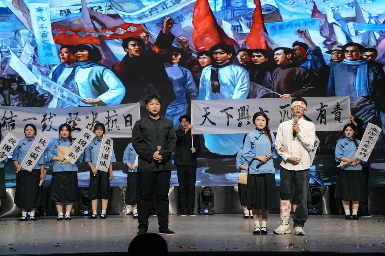 比赛现场,灯光璀璨、氛围热烈。红色旋律激昂回荡,青春舞步铿锵有力,各参赛队伍紧扣 “纪念一二・九运动” 主题,将革命历史场景与青年使命担当巧妙融入歌舞剧表演,以真挚的情感、精湛的技艺演绎红色故事,或再现北平学子振臂高呼、奔走请愿的热血场景,或回望革命先辈为民族解放披荆斩棘的奋斗征程,或抒发新时代青年 “强国有我” 的报国之志。音乐社团、校园十佳歌手带来的助演曲目旋律悠扬、气势磅礴,师生朗诵表演声情并茂、催人奋进,为大赛增添了多元艺术色彩,赢得台下观众阵阵掌声与喝彩声,现场爱国情感持续升温,红色精神深入人心。