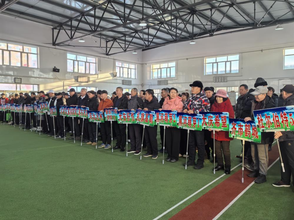 12月23日,由黑龙江省老年人体协、黑龙江省门球协会、大庆市体育局、杜尔伯特蒙古自治县人民政府主办,杜尔伯特蒙古自治县门球协会承办,杜尔伯特蒙古自治县委老干部局、县文化广电体育和旅游局协办,哈尔滨长寿文体有限责任公司支持,杜尔伯特蒙古自治县水产总站、连环湖渔业有限责任公司赞助的第七届黑龙江省老年人“冰雪文化杯”门球赛暨全国中老年人“长寿·杜尔伯特冰雪渔猎杯”门球邀请赛,在杜尔伯特县门球馆拉开帷幕。来自省内外的32支团体、64支双打共计96支队伍、320多名门球爱好者将在赏冰乐雪中展开角逐交流,展示冬季体育健身的独特魅力和老年人体育健身的繁荣进步。