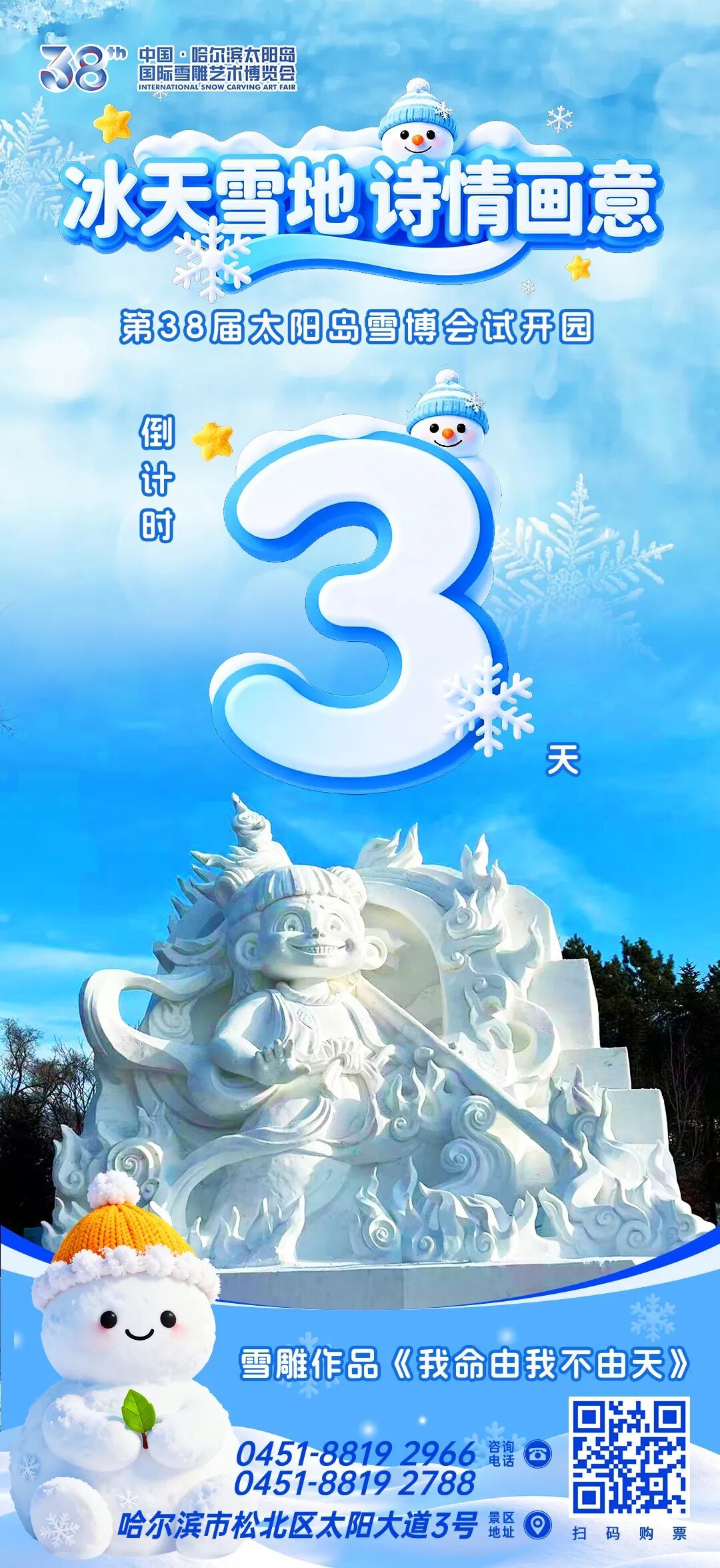 温馨提示广大外地游客:哈尔滨冬日气温较低,请做好防寒保暖措施,并提前规划好行程,确保出游体验。第38届太阳岛国际雪雕艺术博览会已精心筹备好冬日雪韵盛景,诚邀海内外宾朋前来共赏雪雕艺术之美。