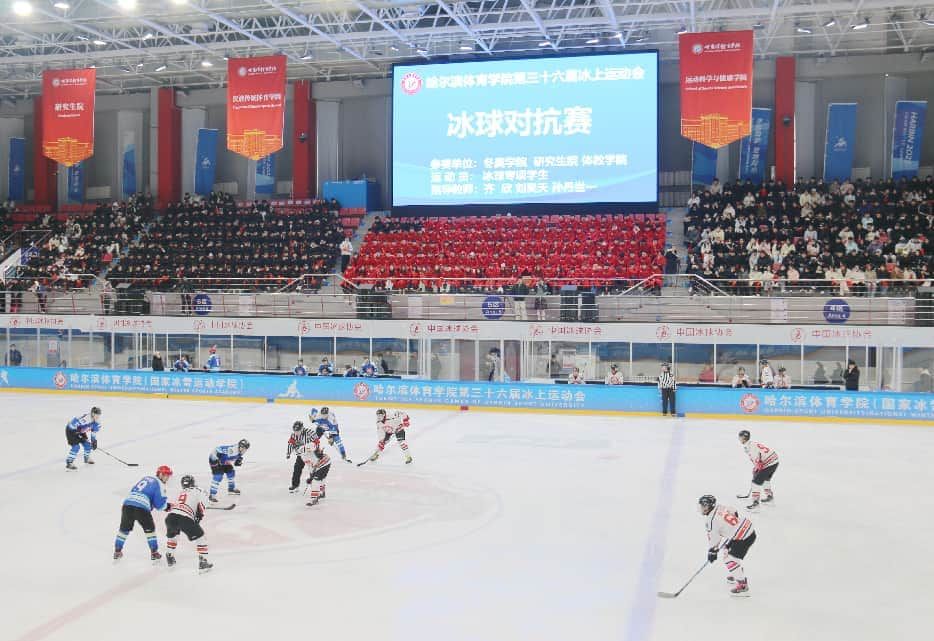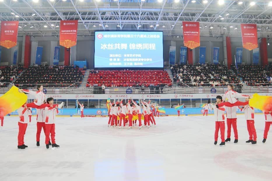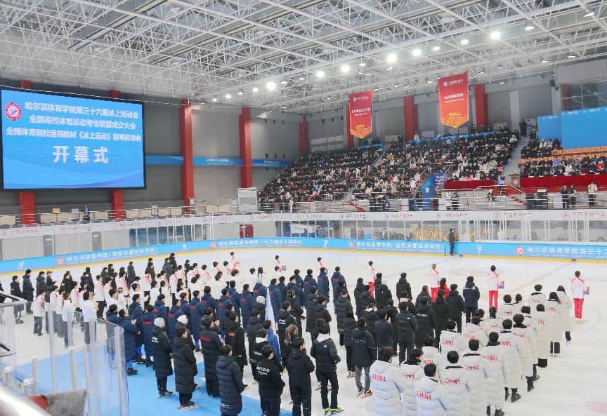 2025年12月28日上午,哈尔滨体育学院第三十六届冰上运动会暨全国高校冰雪运动专业联盟成立大会与全国体育院校通用教材《冰上运动》编写启动会,在哈尔滨体育学院大学生滑冰馆隆重举行。人民体育出版社教材部主任李凡、伊春职业学院院长王春海,哈尔滨体育学院党委书记、校长姜玉洪,学校党委班子成员、全国高校冰雪运动专业联盟成员单位30名代表、2500名师生参加了大会,开幕式由副校长齐景嘉主持。