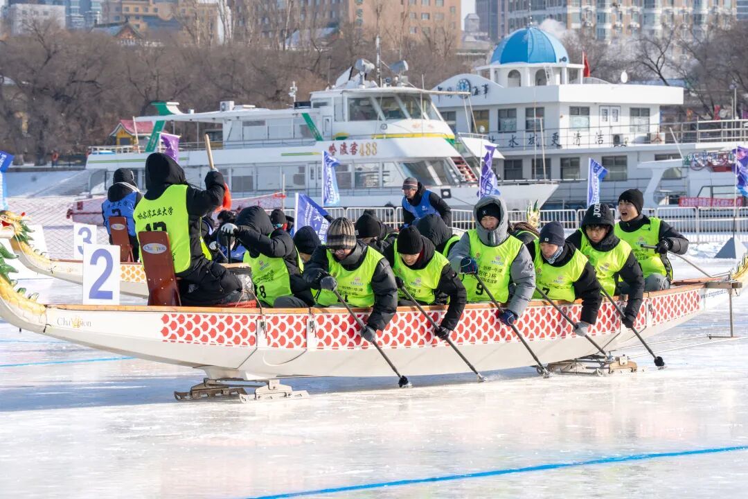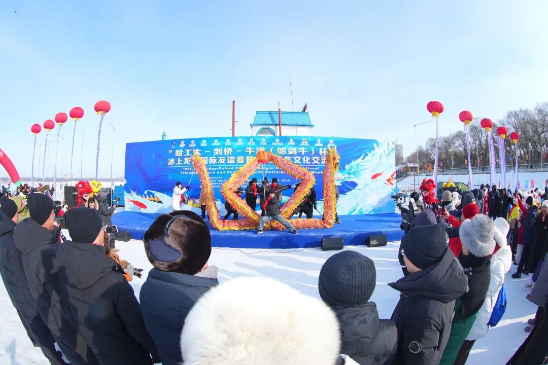 当青春力量跨越山海,没有隔空遥望,只有冰上并肩,百年赛艇遇上冰上龙舟,不同文明的碰撞交融出青年友谊的诗篇。1月10日,由哈工大主办的“哈工大-剑桥-牛津(哈剑牛)杯”冰上龙舟国际友谊赛开幕。来自牛津大学、剑桥大学,北京大学、清华大学、哈尔滨工业大学、复旦大学、上海交通大学、南京大学、浙江大学、中国科学技术大学、西安交通大学C9联盟高校,以及香港中文大学、香港科技大学、澳门大学的14支队伍参赛,中外青年学子在松花江畔同舟共济、奋勇争先。