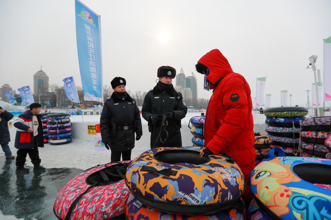 冬季的哈尔滨,冰上娱乐项目吸引着八方来客,松花江畔欢声笑语,与冰雪风光共同绘就北国迷人的冬季画卷。为切实筑牢冰上安全防线,哈尔滨市公安局坚持“警务前移”理念,主动将安全防线推向一线,通过源头督导、立体巡防与宣教服务深度融合,以“时时放心不下”的责任担当,推动安全管控从被动应对向主动预防转变,让市民游客在畅享冰雪乐趣的同时,感受到触手可及的安全与温暖。