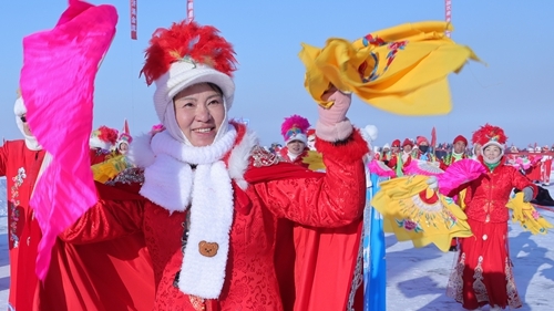 当日上午9时,冬捕季预热表演拉开帷幕。10支秧歌队、400余名队员身着色彩艳丽的服饰,手持彩扇、腰鼓,踏着铿锵有力的鼓点,在冰面上扭起了欢快的东北大秧歌。队员们脸上都洋溢着丰收的喜悦,队形在冰面上不断变换,时而如游龙穿梭,时而如花团锦簇,将东北人的豪爽与热情展现得淋漓尽致。