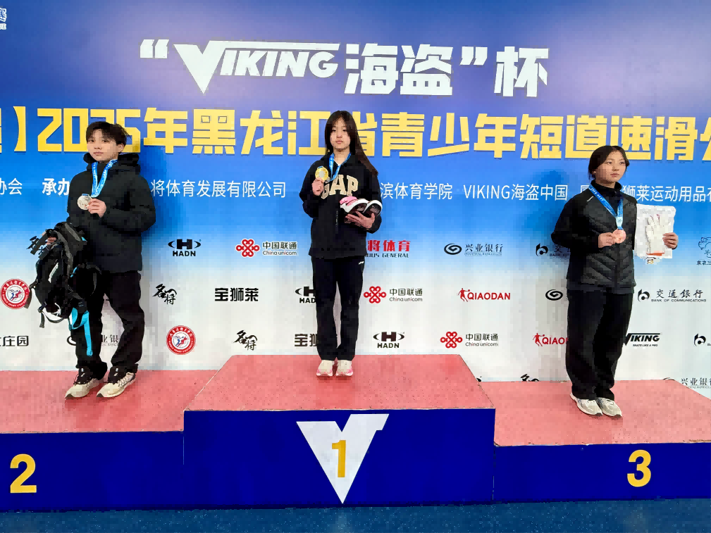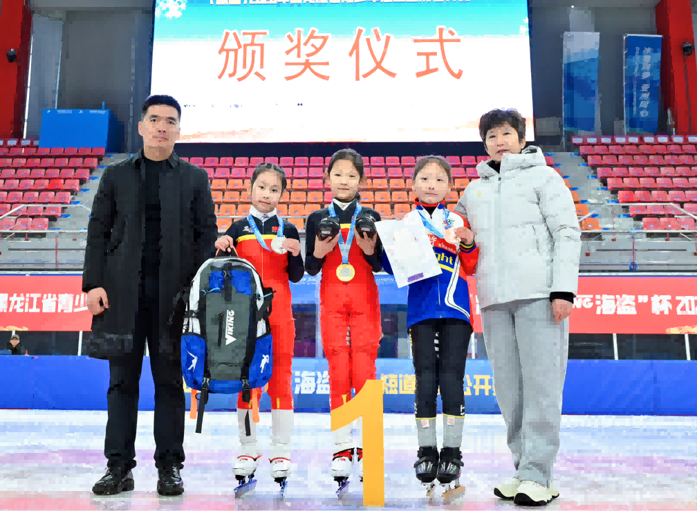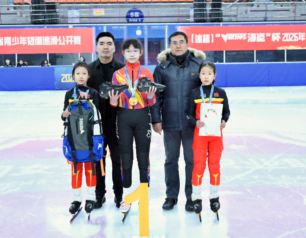 中场休息时,动感音乐为紧张的赛事注入轻松氛围。颁奖环节,获奖小将们站上领奖台,由荷兰VIKING海盗冰刀提供的优质奖品与特制奖牌的荣耀加持,既是对他们长期训练的最佳回馈,也印证了赛事筹备的专业价值。此次赛事的圆满落幕,不仅为青少年短道速滑爱好者提供了交流展示的平台,更以专业筹备与精彩竞技,进一步推动了青少年冰雪运动在本地的普及与发展。