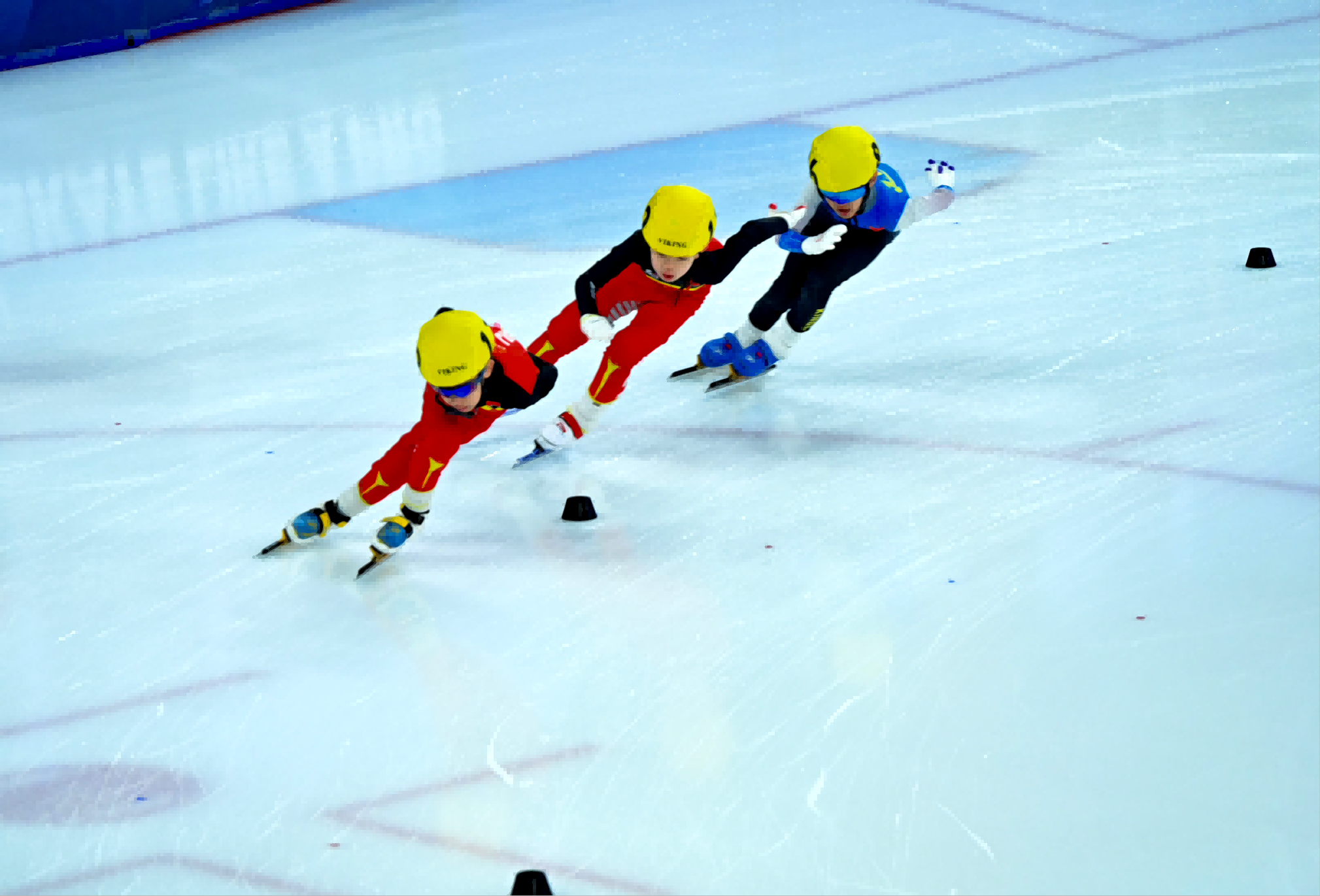 随着裁判枪声响起,小将们迅速进入竞技状态。冰刀破冰的锐响里,直道加速风驰电掣,弯道超越惊心动魄,各年龄段、各组别500米、1000米等项目轮番上演巅峰对决。少年组选手的逆风翻盘、儿童组选手的奋勇冲刺,一次次点燃现场观众的热情,呐喊助威声浪迭起,完美诠释了“一赛一朝见少年”的热血与活力。