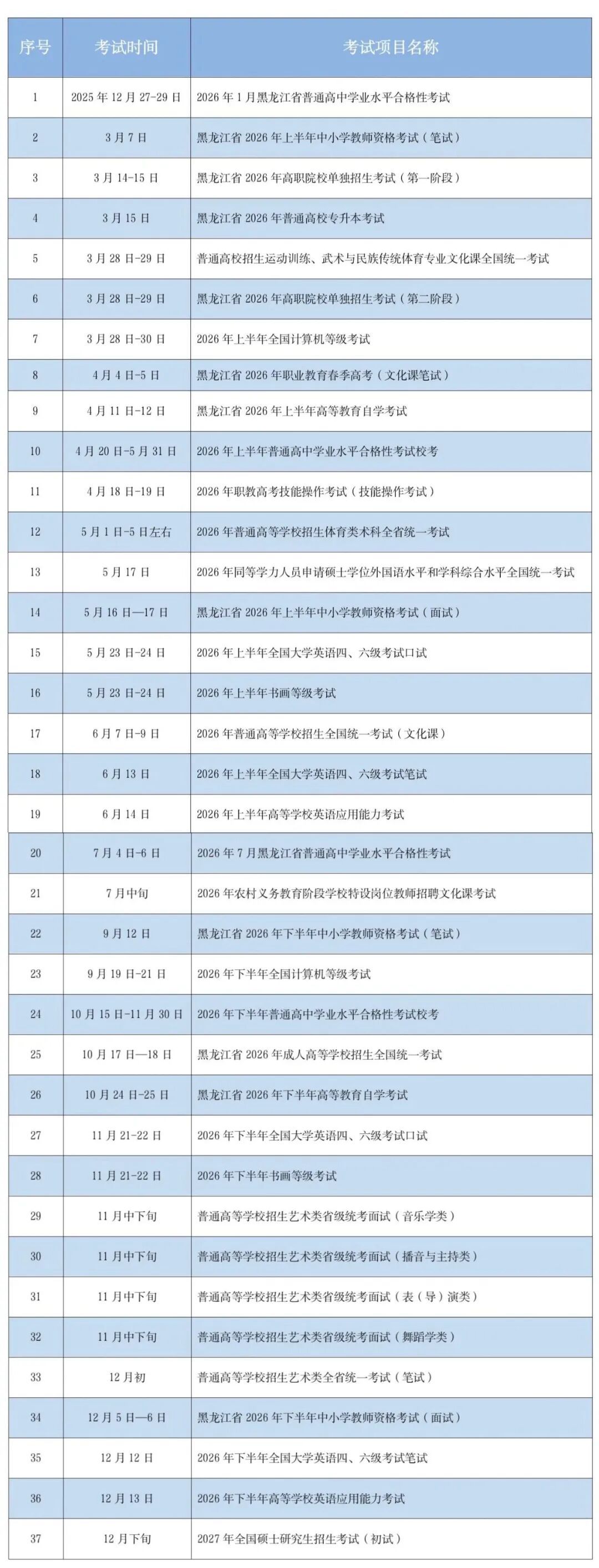 注:各项考试时间,以相关考试正式印发的实施文件为准。
