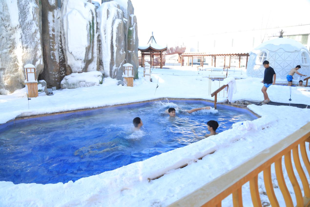 冰天雪地里的温泉池
