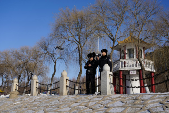 “重点巡逻沿江一侧的冰面情况,发现情况及时上报。”在依兰县沿江岸边,民警正在利用无人机开展空中巡逻。