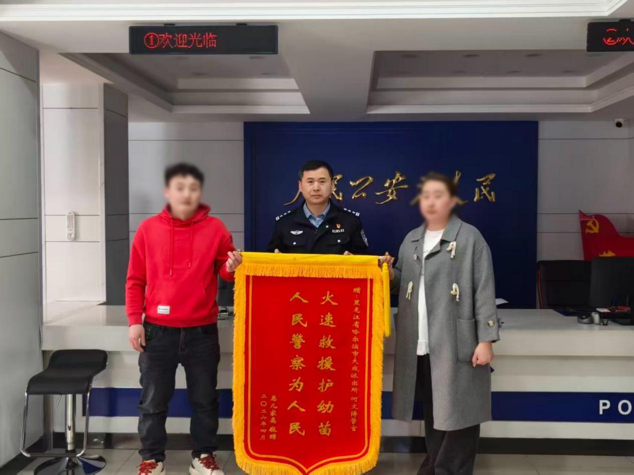 民警默默奉献,百姓铭记在心。患儿康复后,李先生夫妇经过多方打听,专程来到大成派出所,当见到伸出援手的郭锋、何文博后,将提前准备好的锦旗送到民警手中,锦旗上“火速救援护幼苗,人民警察为人民”十四个金字,深深印刻着群众的感激之情。更令人动容的是,李先生夫妇还带来了一份特殊的礼物——一段由康复患儿亲口录制的感谢视频。视频里,孩子清脆的声音说道:“谢谢警察叔叔,将来我也要像你一样!”