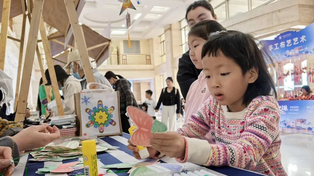 冰雪动漫IP衍生品、麦秸工艺画、博物馆专属文创等好物琳琅满目,深受各年龄段市民喜爱,让文物元素融入日常生活;特色盖章、香包制作、纸鸢制作等互动体验区人气爆棚,老少同乐,真正实现“让文化可触摸、可带走、可分享、可传播”。
