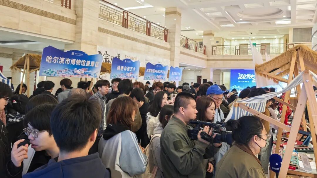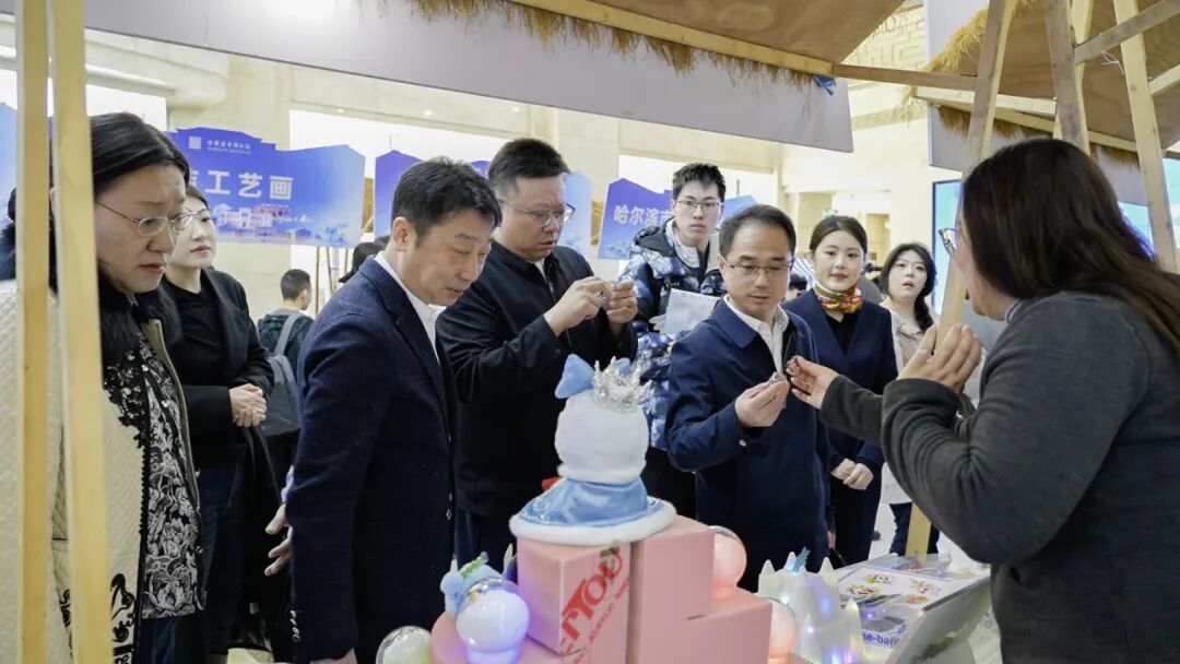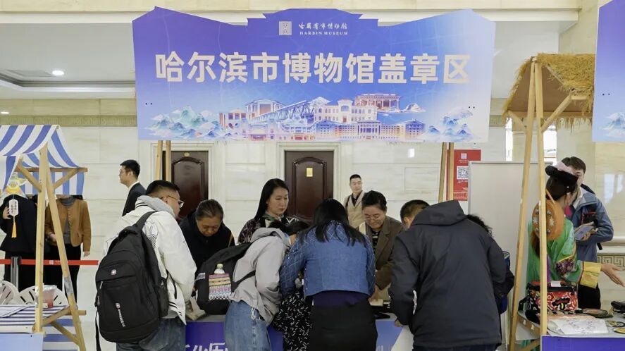 在庄重的启幕环节后,博物馆一楼大厅瞬间“变身”为一个充满烟火气的文创生活街区。八个各具特色的文创摊位,构成一个“微缩版”的创意冰城。生动诠释着“博物馆+”的融合理念。